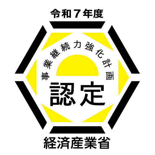 2025/10/02事業継続力強化に取り組む企業として、経済産業大臣より事業継続力強化計画の認定を受けました。