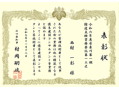 2025/11/26令和7年度山口県優良建設コンサルタント等業務表彰を受賞しました。