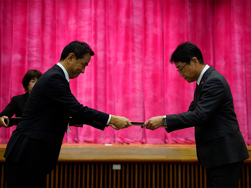 2026年度新卒採用の内定式を実施いたしました。10月1日に本社にて開催された式典では、社長からの歓迎の挨拶に続き、内定者一人ひとりに内定通知書を授与いたしました。内定者の皆さんからはそれぞれの決意表明をいただき、温かい雰囲気に包まれた有意義な時間となりました。