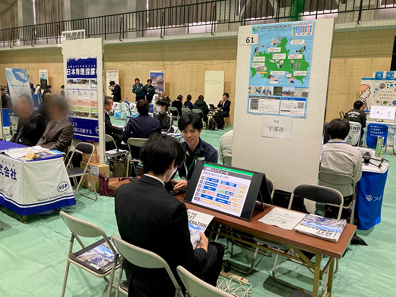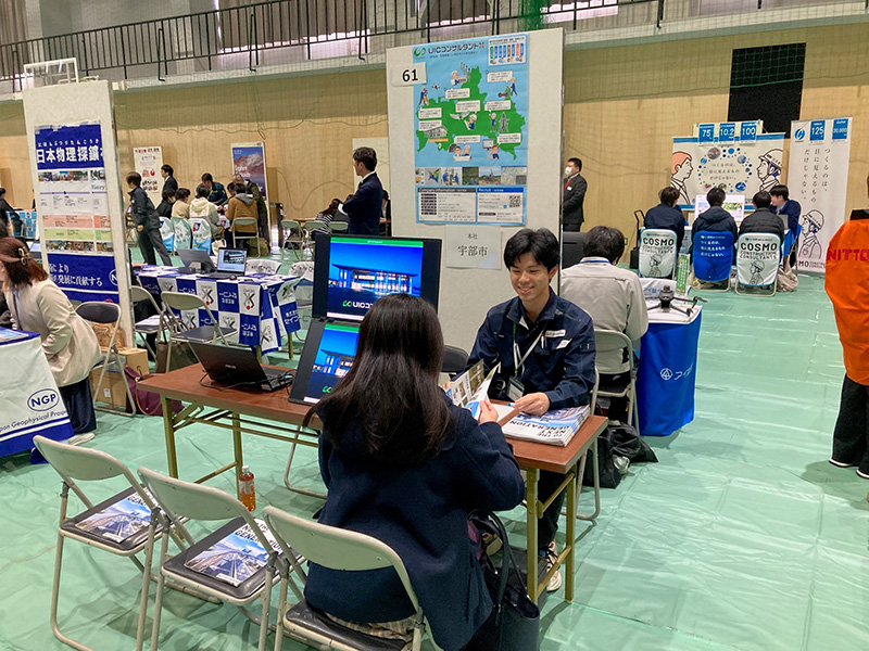 山口大学地質系業界説明会2025に参加いたしました。本説明会は、学生が企業と直接対面し、地質系専門職の職種内容や実務、業務の難しさ、やりがいなどを肌で感じることを目的としています。当日は多数の企業と学生が参加し、会場は熱気に包まれていました。
